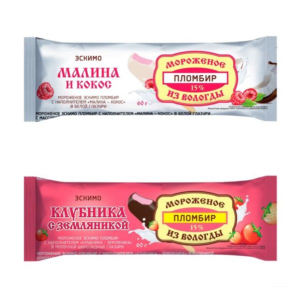 Мороженое Из Вологды пломбир 15% ассорти эскимо 60 г, упаковка 20 шт