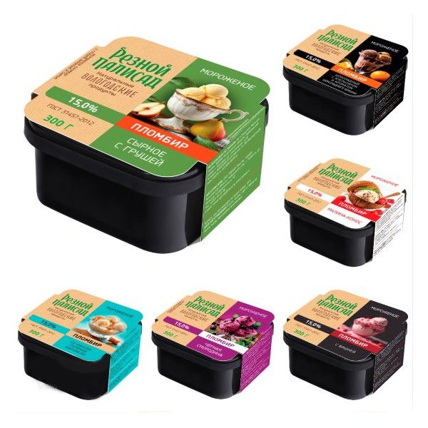 Мороженое Резной Палисад пломбир 15% ассорти 6 вкусов 300 г, упаковка 6 шт