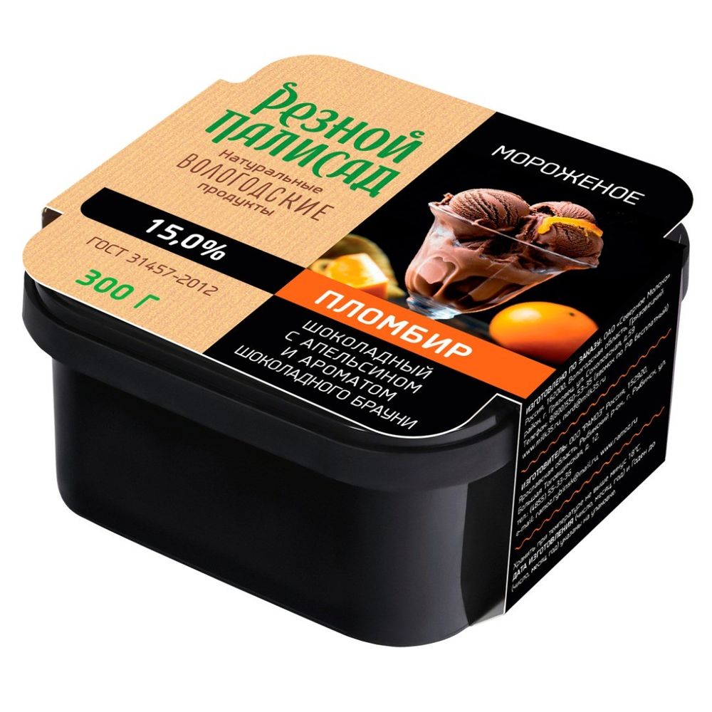Мороженое Резной Палисад шоколадный брауни 15% с апельсином контейнер 300 г, упаковка 6 шт